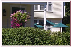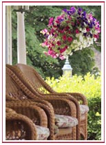 Relax on our wraparound porch with views of the Lake or under an umbrella at one of the tables in the garden.